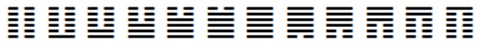 На самом деле, линейные противоположности этих гексаграмм расположены по диагонали поперек массива 8 х 8, как показано на рисунке с восемью гексаграммами вверху и внизу: