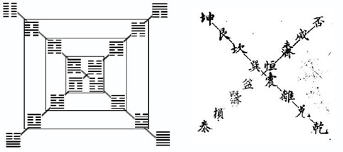 Согласно моему чтению, четыре категории гексаграмм, лежащих в основе матрицы Шао Юна, упоминаются в подструктуре Чжоу И. Однако точка соприкосновения между Цуй, Ваном, Шэнем и мной заключается в том, что все мы независимо друг от друга предложили архитектурный "скелет", лежащий в основе последовательности Чжуйи, превратив ее в самостоятельный образ — утверждение Вана о разнице между его работой и более ранними исследованиями. Более того, анализ Ванга и мой анализ совпадают в достаточном количестве мест, чтобы придать правдоподобие утверждению о лежащей в их основе взаимосвязи между последовательностью Чжуи и матрицей Шао Юна 8 x 8.